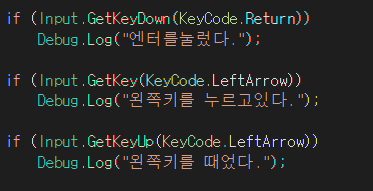 -1, 0, 1 세 가지 값 중 하나가 반환됨 키보드 값을 눌렀을 떄 즉시 반응해야한다면 이걸사용