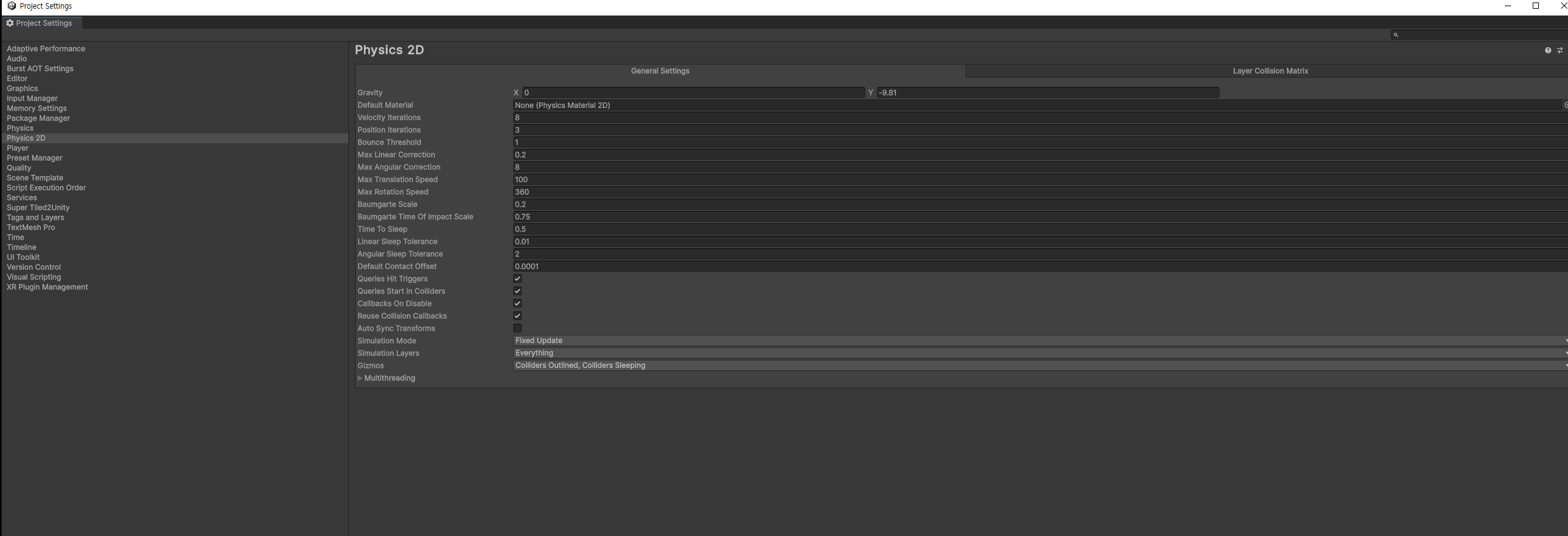 프로잭트 Contact OffSet을 0.01에서 더 낮게 낮추어주었더니 해결