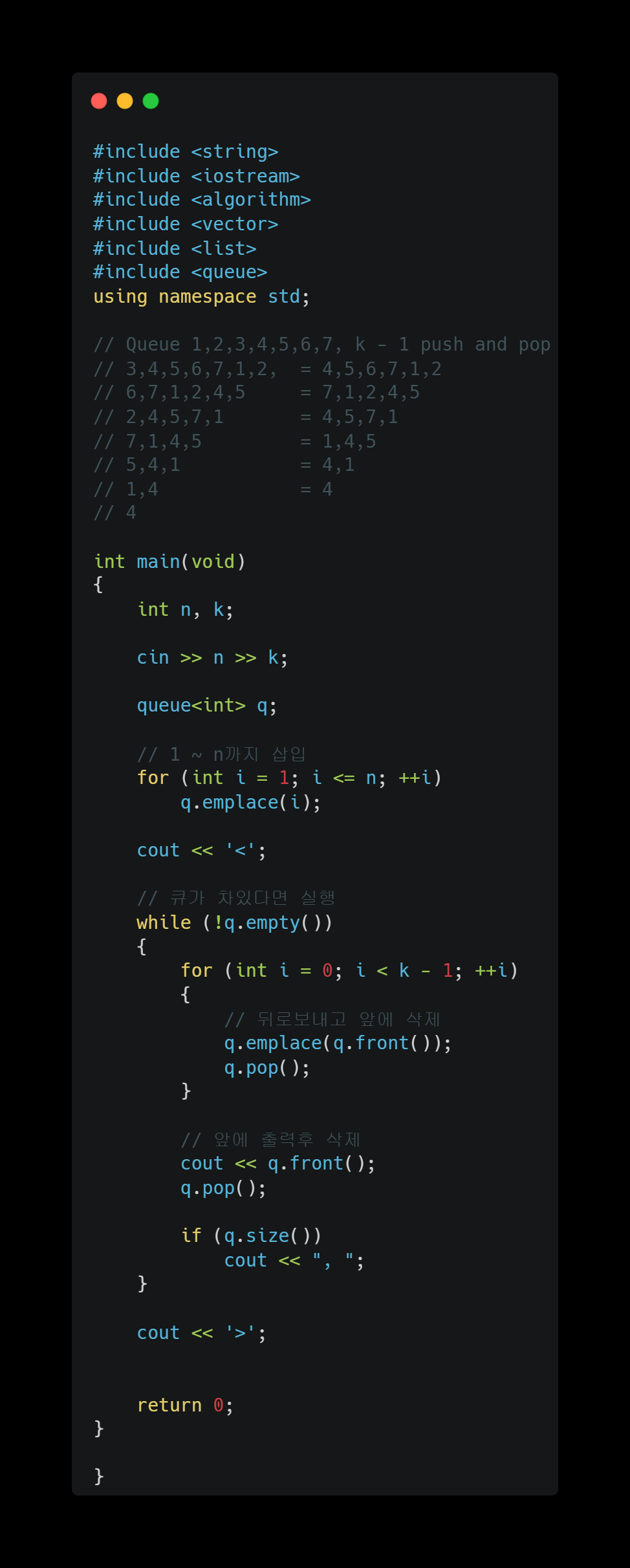 K - 1번을 출력후 삭제해주면된다.