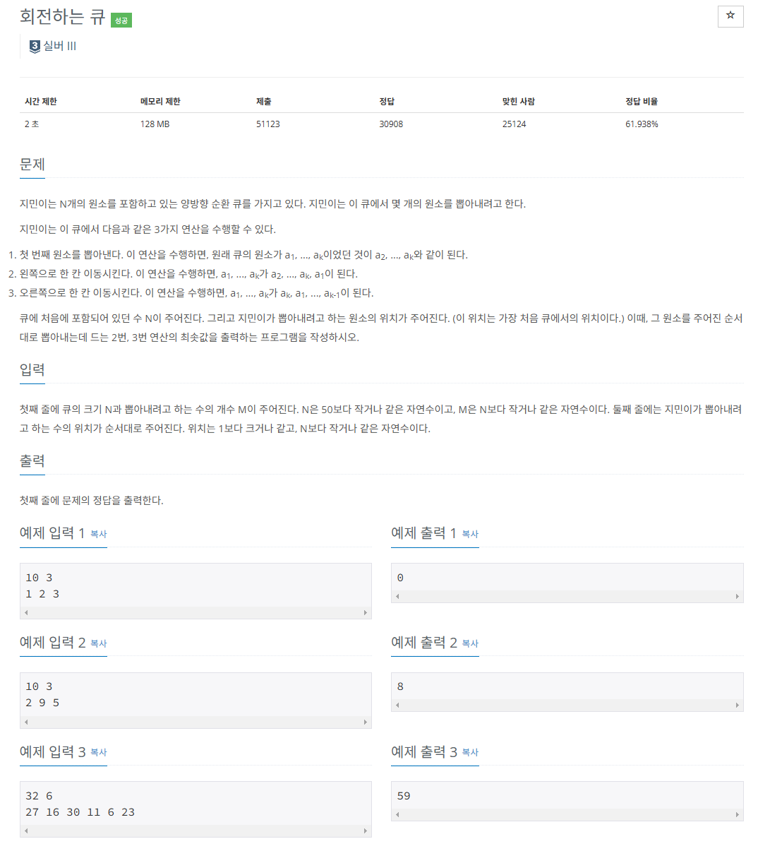 N개의 크기를 가진 deque에서 M개의 수를 뽑아내는 문제이다