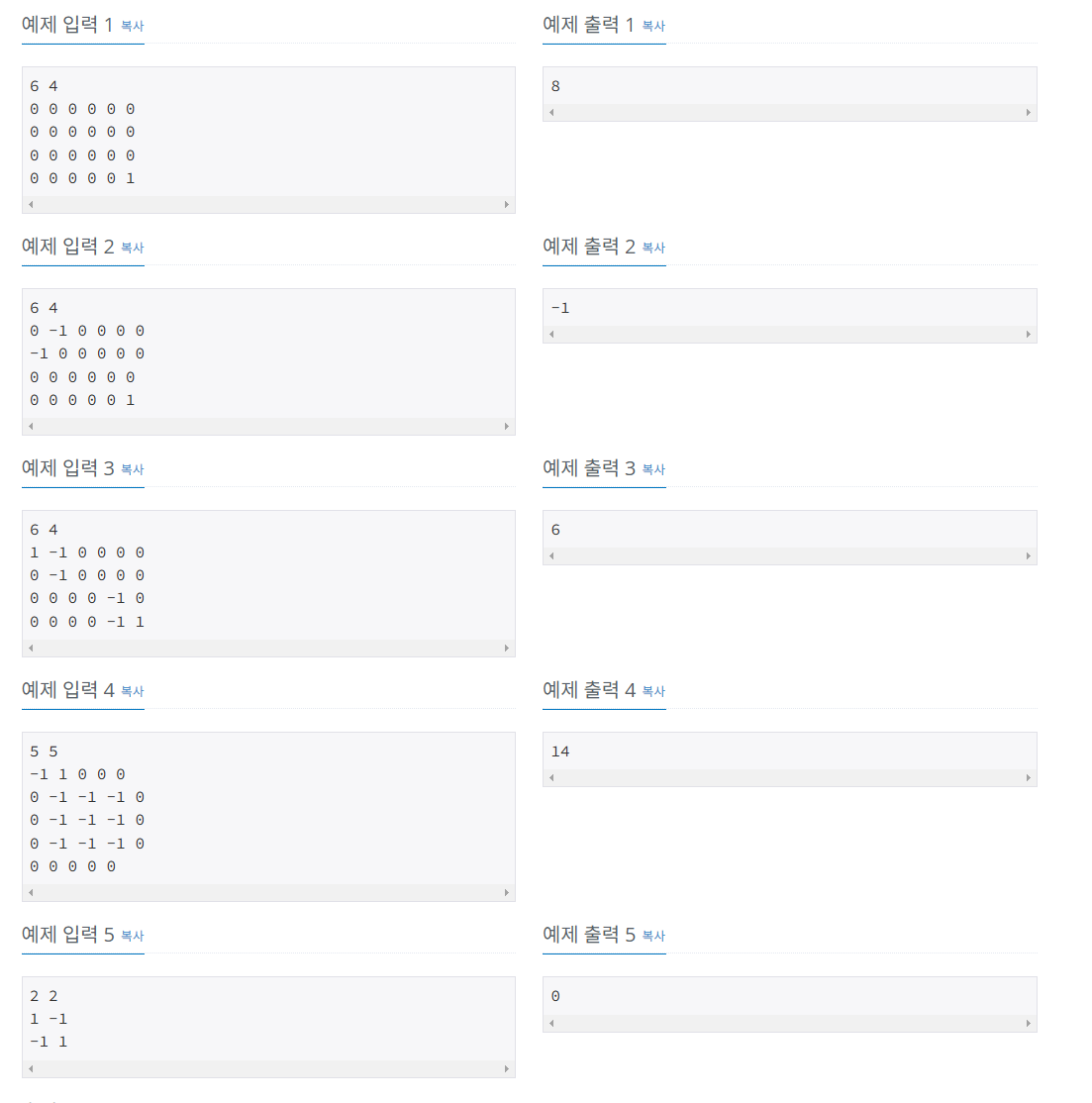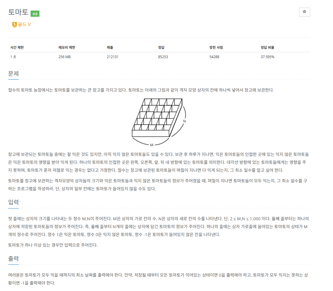 근데 출력에서 0 = 처음부터 모두 토마토가 익어있는거고, -1은 모두 익지 못하는 상황이고,