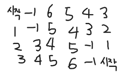 그러면 상하좌우로 갈 수 있는 부분만 -1로 미리 표시를 해놓으면 되지 않을까?