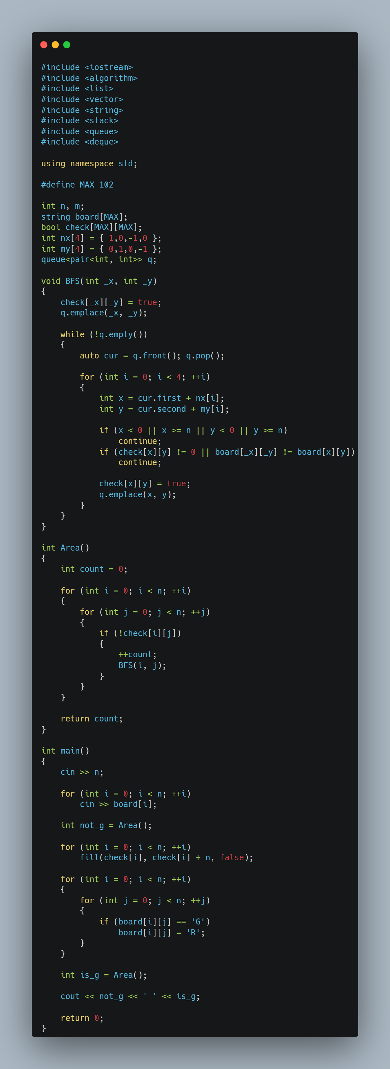 각 구역마다 돌면서 R갯수 G갯수 B갯수를 구해서 갯수를구하고