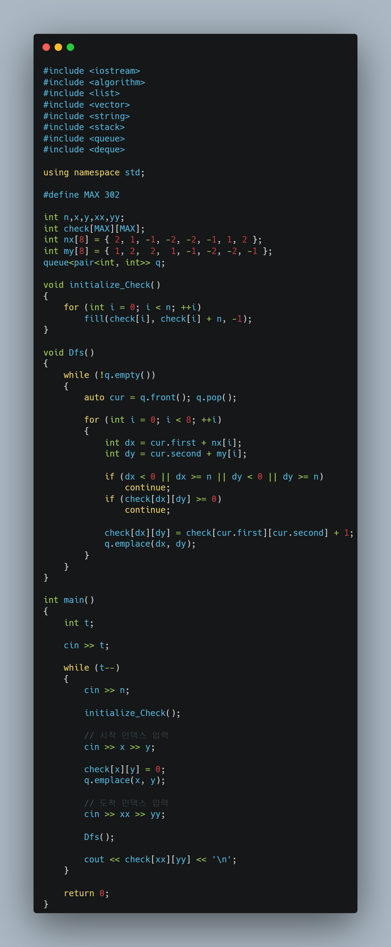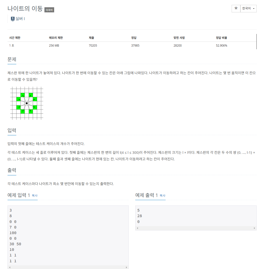 [BG] 7562 - 나이트의 이동 (BFS 상하좌우가 아닌 이동) 본문