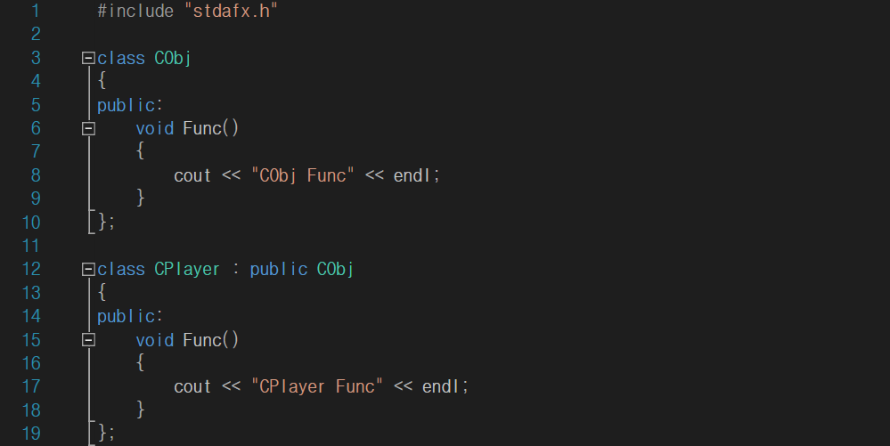 -> CObj의 CPlayer 클래스 내부에는 Func()함수가 있다.