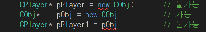 1. 객체 포인터간의 형 변환만 가능하다.