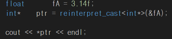 -> 모든 포인터간의 형 변환을 허용하는 캐스팅.
