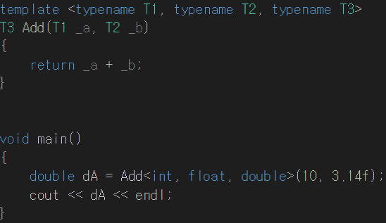 -> <>안에 명시한 자료형이 함수 템플릿에서 정의한 T자리에 매칭이 된다.