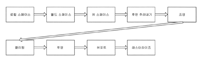 "3D 세계에 대한 기하학적 표현과 이 세계를 바라보는 관점을 정의하는 가상 카메라를 이용해 2D 이미지를 만들어내는 역활을 담당한다." 라고 설명한다.
