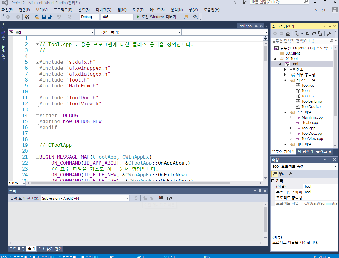 Tool -> 우클릭 -> 추가 -> 새 프로젝트 -> MFC 응용 프로그램 생성