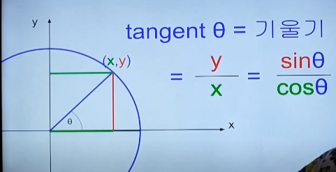 탄젠트 = 밑변 / 높이