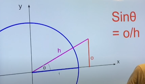 빗변 / 높이가 사인인대 빗변의 길이가 1이니 그냥 Y좌표는 사인값이된다