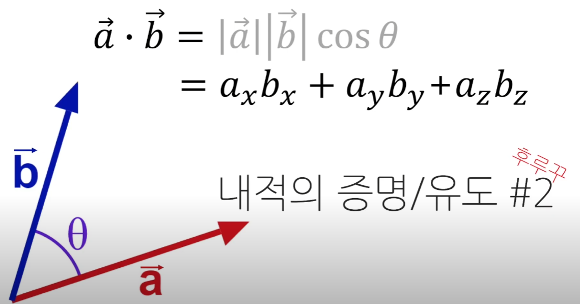 따라서 a백터와 b백터의 내적은 이렇게 나오게된다