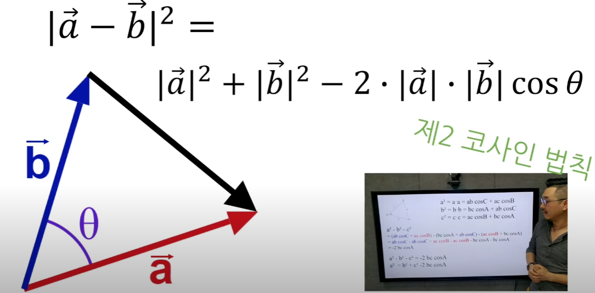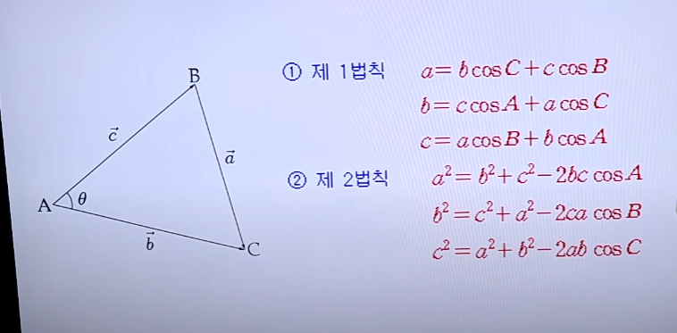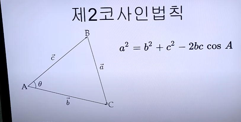 제 2코사인 법칙을 이용하면 위 백터를 삼각형이라고 가정햇을떄