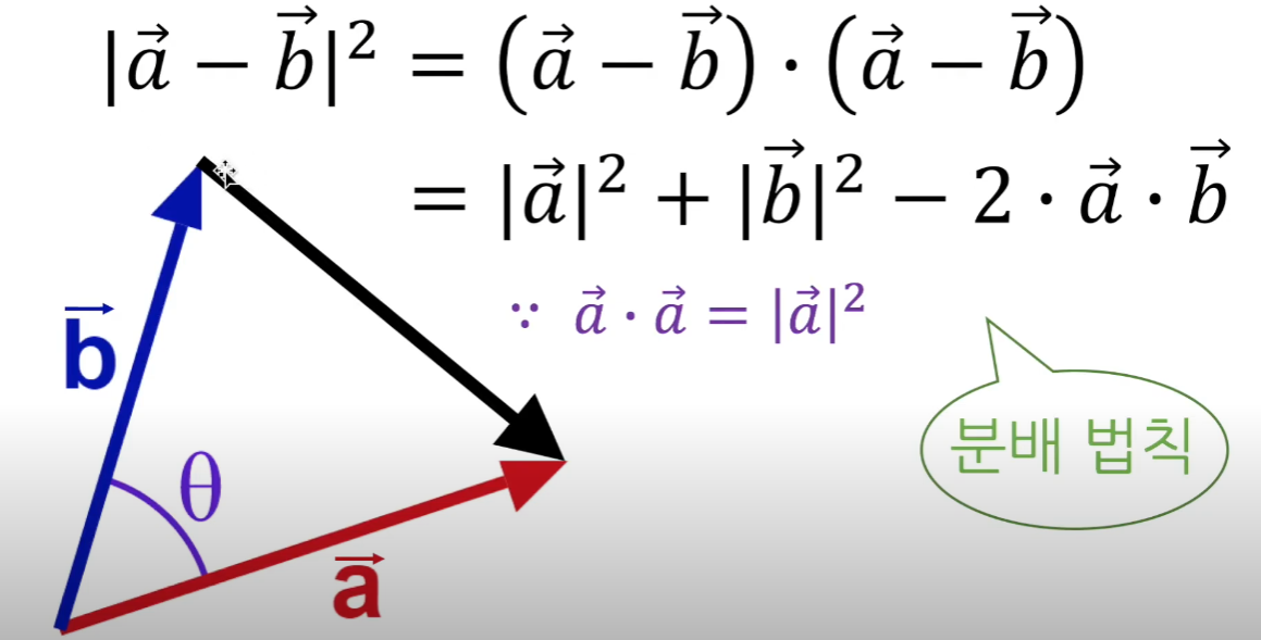 A백터 제곱 + B백터 제곱 - 2 * A백터 * B백터 * 코사인 세타