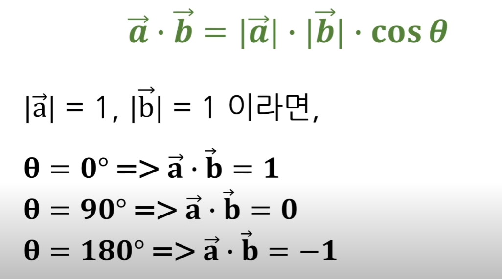 두백터가 서로 반대방향을 보고있으면 내적값은 -1