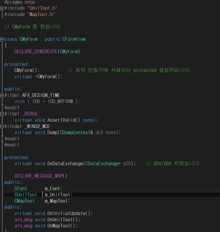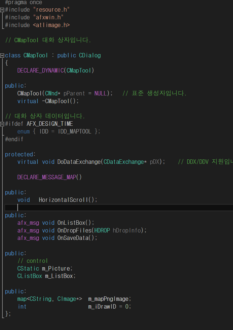 맵툴 클래스를 받아오기위해 헤더추가후 멤버변수 선언해준다
