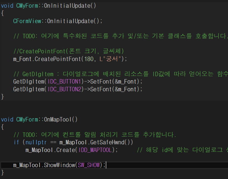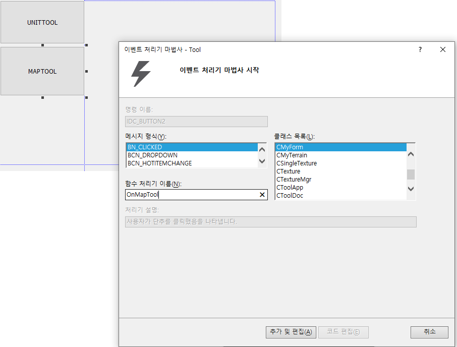 MFC 클래스를 생성한다 CMapTool로 기본클래스는 CDialog로 받는다