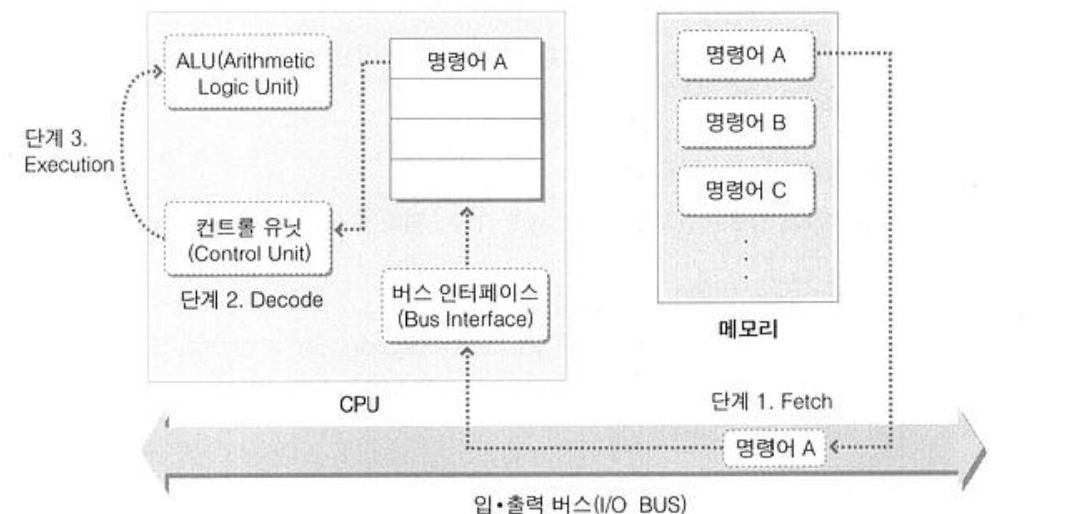 3. Execution : 해석된 명령어의 명령대로 CPU가 실행하는 단계이다.