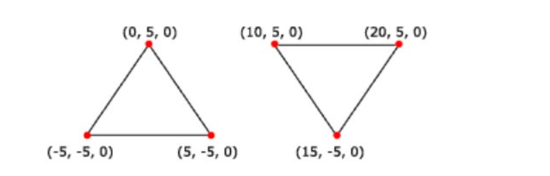 정점은 3D 공간 좌표이지만 지금은 Z값이 일정해서 깊이 차이는 없다.