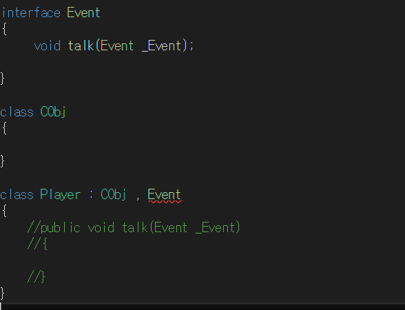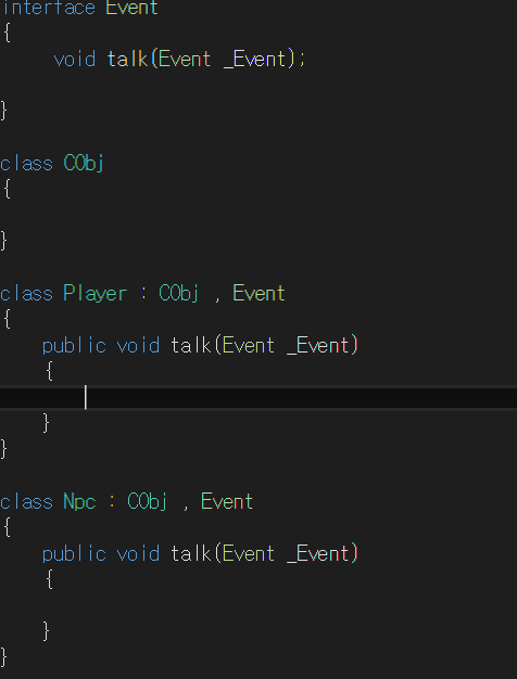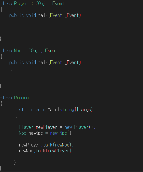 Player와 Npc는 Event 인터페이스를 상속받기에